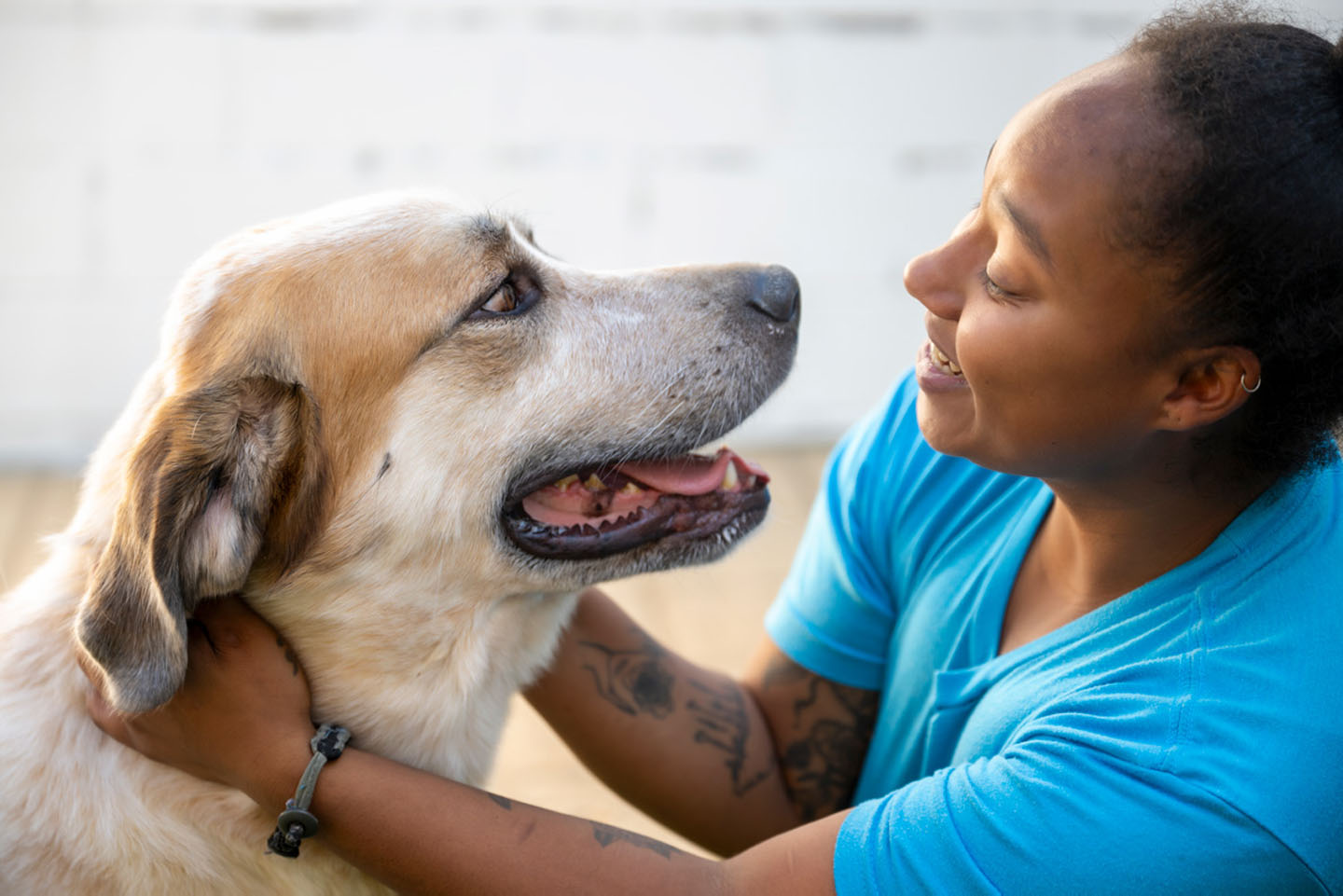 An Animal Welfare League of Alexandria volunteer with dog Bandit. (Photo: DeSilva Studios. Courtesy of the Animal Welfare League of Alexandria)