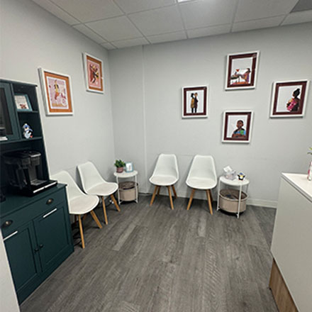 The SafeSpot front lobby with coffee for caregivers and toys for kids.